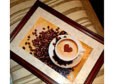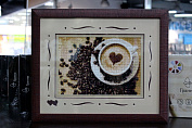 На работу надо смотреть из далека, тк вблизи зерна кофе превращаются в набор точек (это не к недостаткам, это просто констатация факта). И мои ожидания немного не совпали, тк я ожидала больше коричневый оттенков, а здесь есть тёмно-бордовые. Не портят совершенно, просто другие ожидания были.
