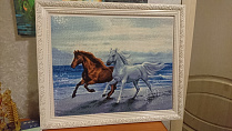 Алмазная вышивка «Арабские скакуны» - прекрасный экземпляр для любой домашней коллекции. Грациозные животные, бегущие вдаль на огромной скорости, прекрасно передают динамику стремительного движения. А живописный фон придает всей анималистической композиции легкости и безмятежности.