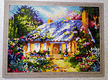 Яркая картина с милым сюжетом. Я назвала её Дом моей Мечты где-то на юге. Получила истинное наслаждение в процессе работы и любуюсь сейчас на результат.
