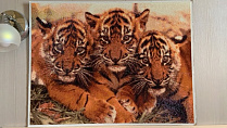 В наборе все прекрасного качества : холст , стразы практически без брака , очень качественный клеевой слой , бумага над ним разрезана на пять полос , это очень удобно !!! Пинцет фантастически удобный . Стразы основательно рассыпала два раза , но несмотря на это досадное обстоятельство , они остались в большом количестве . В результате 7 месяцев релакса миру - миру явились очаровательные полосатики , такие реальные , что хочется их погладить