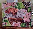 Доставка ко времени пришла. Хорошо упакована. Все в комплекте. Краски и холст, кисть все в комплекте. Раму тоже привезли. Подошла по размеру и сюжету