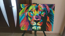 Картина по номерам отличного качества. В комплекте есть все необходимое для работы - холст на подрамнике с четкой символьной схемой, кисточки, краски в баночках, тряпочка, контрольный лист-схема. Из коробки выдавливается палитра и стаканчик под кисточки. Рисуется прост, мелких деталей почти нет. В готов виде получается очень яркой, красочной и эффектной. Отлично подойдет даже новичку.