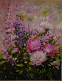 Если вы любитель цветочных натюрмортов, эта работа вам точно понравится. Сочетание пышных садовых пионов и необычных изысканных люпинов – букет для настоящего флористического гурмана. Несмотря на то, что в картине используется множество оттенков, вся она выдержана в нежных и сдержанных тонах.