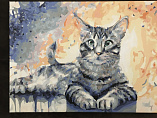 Рисовать котов очень интересно, ведь можно прорисовывать каждую шерстинку, добиваясь максимальной реалистичности. Автор картины создал правдоподобного, милого и красивого кота. Дополнил он свое творение интересным фоном, над которым работать не менее увлекательно, чем над самим котиком.