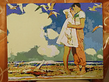 Очень понравился сюжет, брала этой же марки другие картины, было всё хорошо, но с этой картиной не повезло. Границы еле видны, номера красок проставлены еле заметно и не понятно, к какой границе относятся, всё одного размера, местами номер больше самого кусочка, приходилось рисовать местами с фонариком, что бы разобрать, очень блекло,похоже, как в принтере краска закончилась. Так ещё и сам холст с дефектом, как буд то что то протекло на него. Так что местами рисовала на глаз. Но оно того стоило, вышла красивая, теплая и романтичная картина.