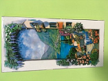 Нужно вырезать все элементы и склеить их при помощи двустороннего скотча. Чтобы придать композиции дополнительный объем, слои “приподнимают” при помощи клеевых подушечек или объемного двустороннего скотча.