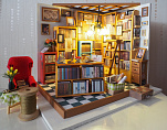 С помощью ножниц и клея вы сможете собрать удивительно детализированный интерьер одной комнаты. Каждый элемент собирается из деревянных и бумажных составляющих. Изюминкой румбоксов является проводка электричества для миниатюрных светильников, работающих от батарейки.