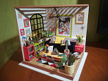 С помощью ножниц и клея вы сможете собрать удивительно детализированный интерьер одной комнаты. Каждый элемент собирается из деревянных и бумажных составляющих. Изюминкой румбоксов является проводка электричества для миниатюрных светильников, работающих от батарейки.