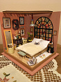 С помощью ножниц и клея вы сможете собрать удивительно детализированный интерьер одной комнаты. Каждый элемент собирается из деревянных и бумажных составляющих. Изюминкой румбоксов является проводка электричества для миниатюрных светильников, работающих от батарейки.