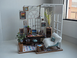 С помощью ножниц и клея вы сможете собрать удивительно детализированный интерьер одной комнаты. Каждый элемент собирается из деревянных и бумажных составляющих. Изюминкой румбоксов является проводка электричества для миниатюрных светильников, работающих от батарейки.