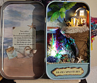 Уютный летний домик двух очаровательных зайчат помещается в красивую металлическую шкатулку. В домике зайчиков горит настоящий свет, а морское дно переливается таинственными огоньками. Белла отдыхает на пляже и ждет возвращения Гарри, чтобы устроить вместе пикник. А Гарри отправился на морскую рыбалку, каким же будет его улов?