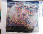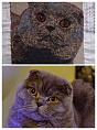 Это была первая для меня вышивка бисером, поэтому, уважаемые мастера бисерной вышивки, не судите слишком строго, если заметите огрехи. Но мне самой результат многодневной работы очень нравится! Да, вышивала я не один и не два дня, но кот вышел как живой. Жаль, фото не передаёт весь живой блеск его медовых глаз. Но этот бисерный портрет так похож на моего шестилетнего друга Фрэнсиса! Только сравните!